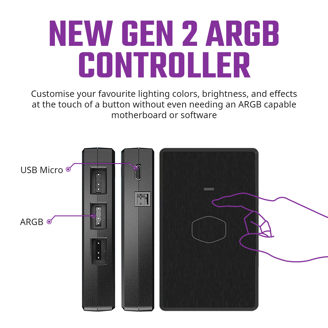 MasterFan MF120 Halo: Dual loop Gen 2 Addressable RGB fans with 24 individual ARGB LEDs.