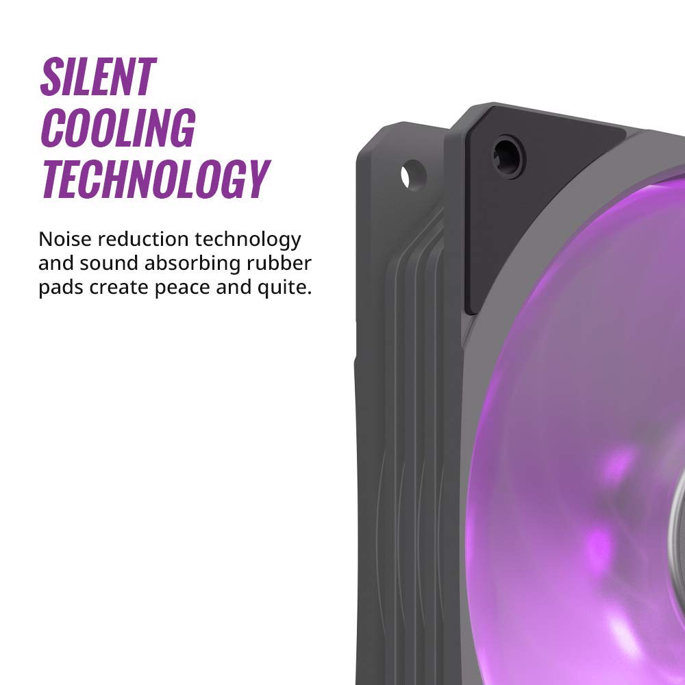 - Square fan design – sound absorbing rubber pad frame maximizes area coverage and Airflow pressure.