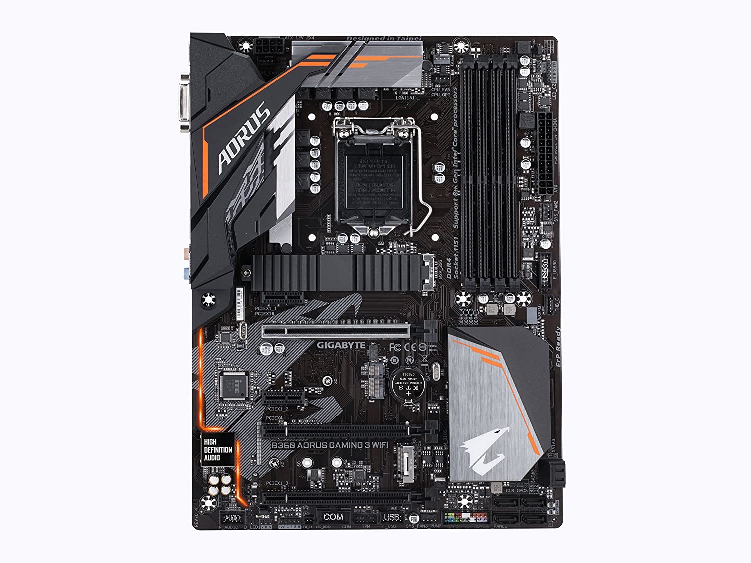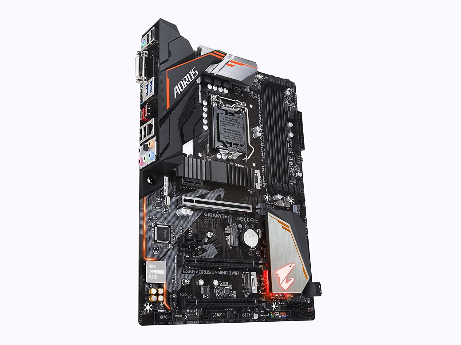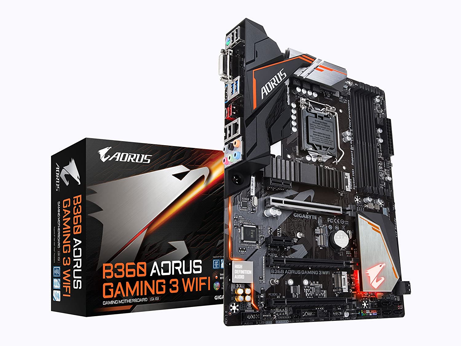 Supports 8th Gen Intel® Core™ Processors Intel B360 AORUS motherboard with Intel CNVi WIFI ready, M.2 Thermal Guard, RGB Fusion with Digital LEDs, Intel GbE LAN with cFosSpeed, Dual M.2 slots, Ultra Durable PCIe Armor, Native Intel USB 3.1 Gen2 Type-A, Anti-Sulfur Resistor, Smart Fan 5, DualBIOS™, CEC 2019 ready