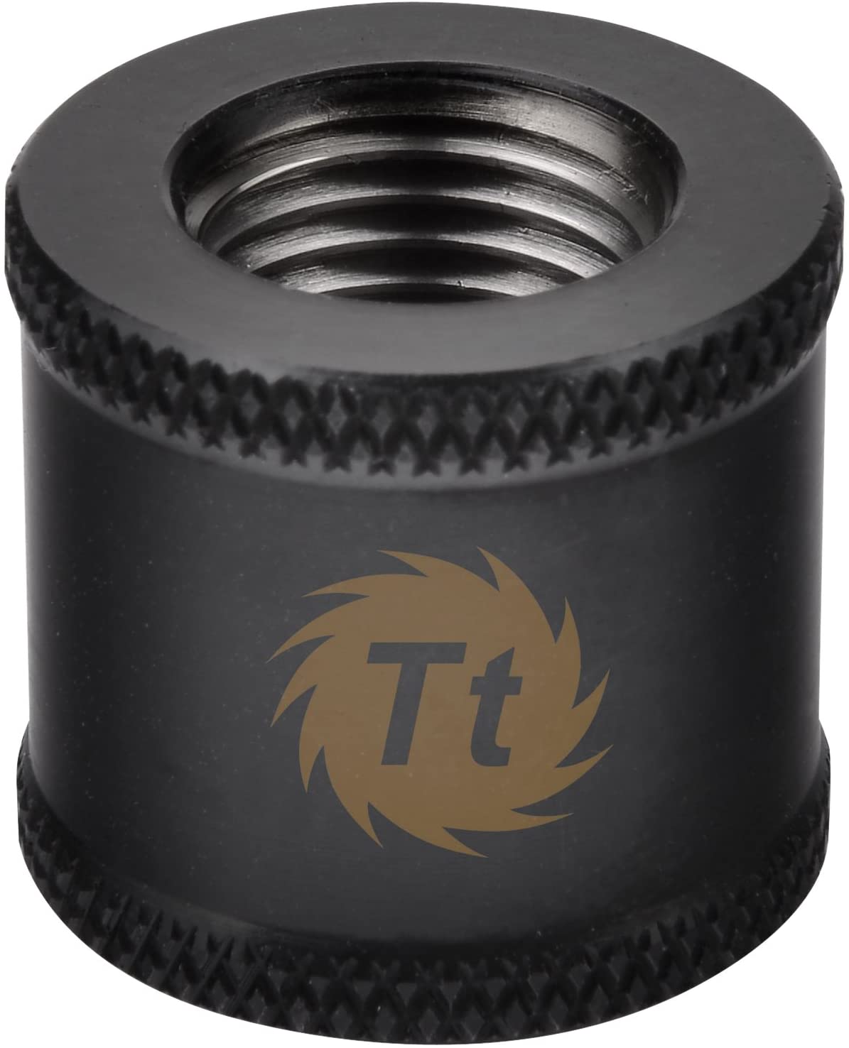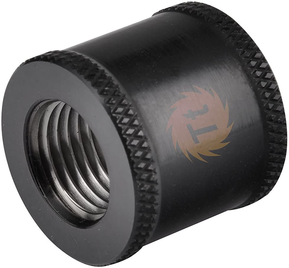 • Finished in black-plated copper, the G1/4 female to female extender fitting is designed with a side printed Tt logo.